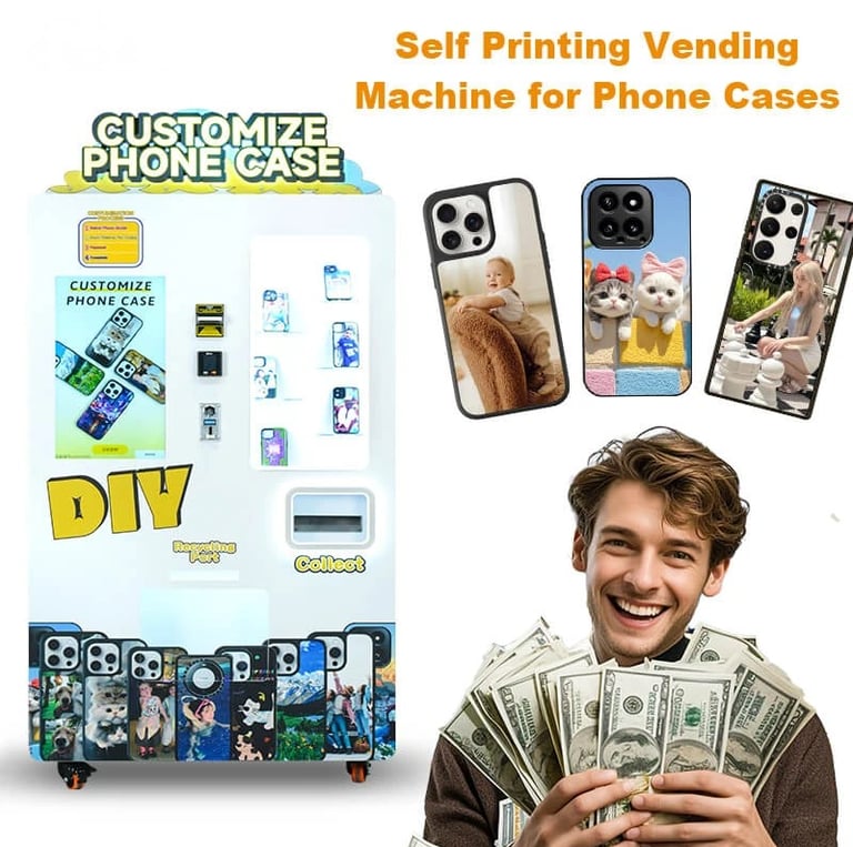 Create unique phone cases quickly with our AI-powered self-service kiosks in high-traffic locations.